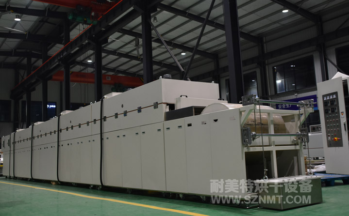 2、外形尺寸(約):總長16500*高2000*寬1230mm;進(jìn)料部分長2000mm,烘干部分長12000mm,分為4段,每段3000mm,出料部分1000mm;輸送帶離地高1400±20mm;